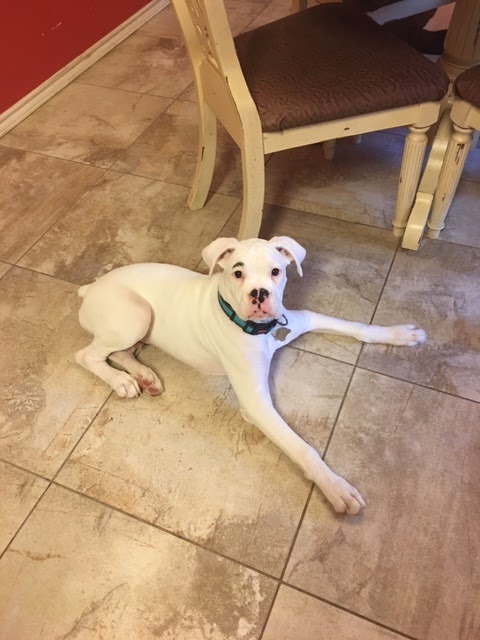 For whatever reason, she and I bonded very strongly. My husband said when I'd leave, she'd sit at the door and cry until I came back. But in Boxer rescue, you cannot adopt a female if you have a female Boxer for various reasons. So I found her a home with a single dad (my fav kind of adopter) who works from home.