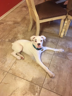 I know, I know. I have enough dogs. My Macadoo is old and failing. He's 13 which is super old for a Boxer and my vet says he has a Pancreatic tumor. Once he leaves us (which will hurt a lot - he was our very first Boxer), I will have my Liberty Bell, who is 8, and my Peyton, who is also around 8. He's a rescue so we don't know how old he is exactly. I also have foster Keeper Truman, who is 4 and has a serious brain illness. So right now, there are 4 Boxer dogs living in my home. Dudley has been gone 8 months and I still miss him like a giant hole in my heart. I never wanted a white dog, didn't even particularly care for white dogs, but I loved that boy. And because of him, I now find white dogs beautiful.